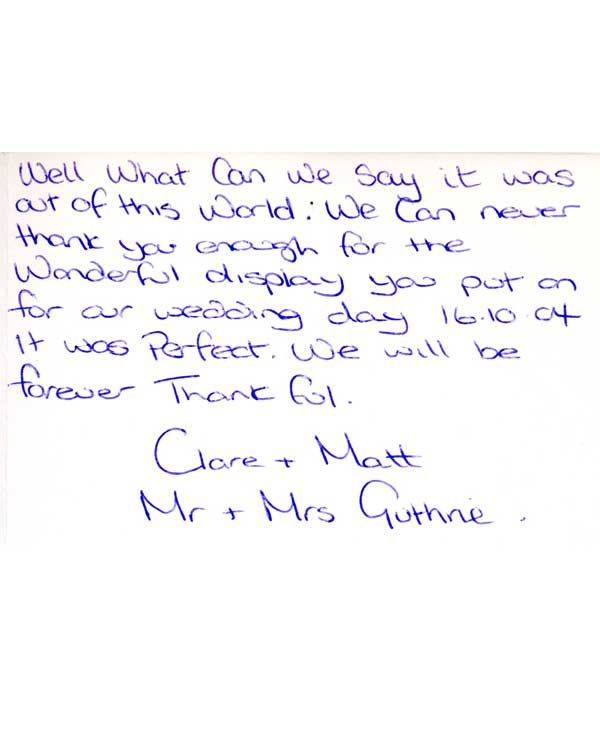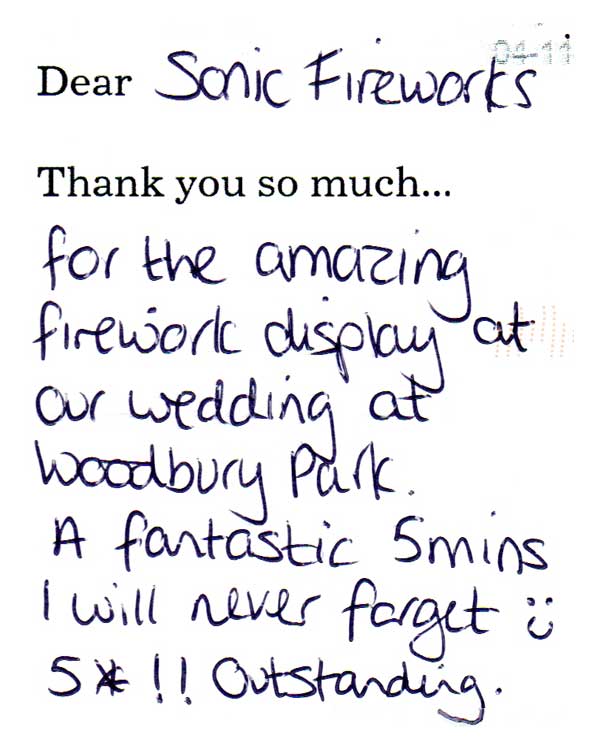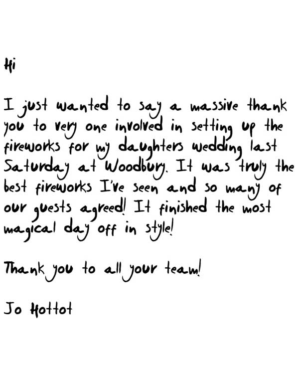 We promise to make your Wedding Firework Display truly memorable for you and your guests.