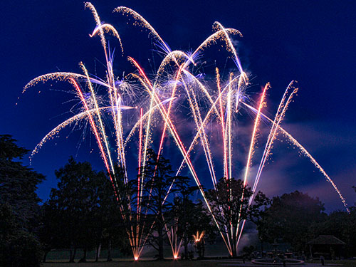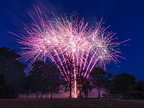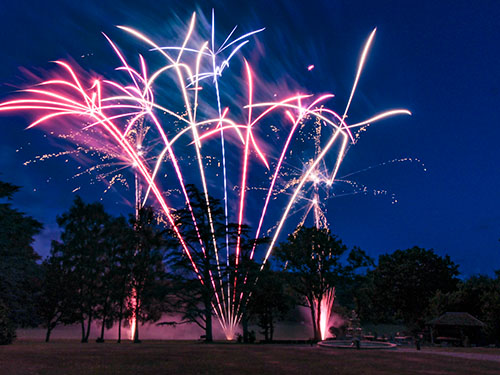 Fireworks are usually fired from the field adjacent to Deer Park and sometimes in the grounds themselves near the fountain as well. The best viewing area is on the terrace outside the main house. The outside pizza area and seating will need to be vacated before the fireworks can start.