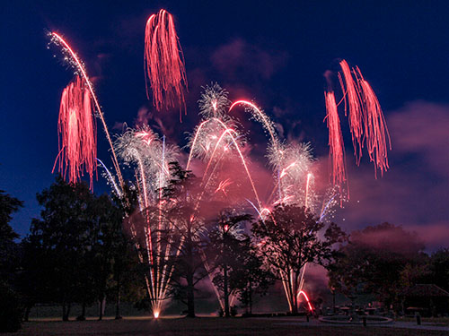 Fireworks at Deer Park look stunning as they apear through and above the tree line at the bottom of the park’s beautiful gardens.