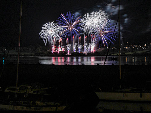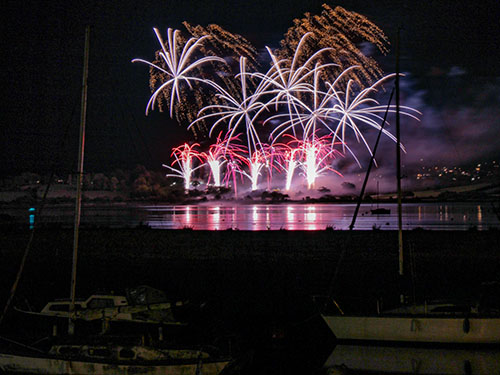 Fireworks at Lympstone Manor look amazing as they pop up from behind the vineyard and have the Exe Estuary as a backdrop.